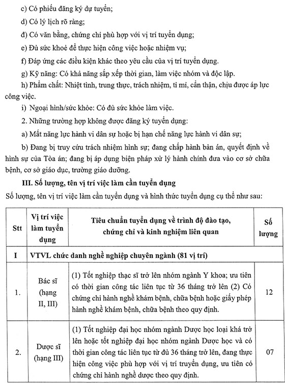 1. Số lượng tuyển dụng: 116 chỉ tiêu