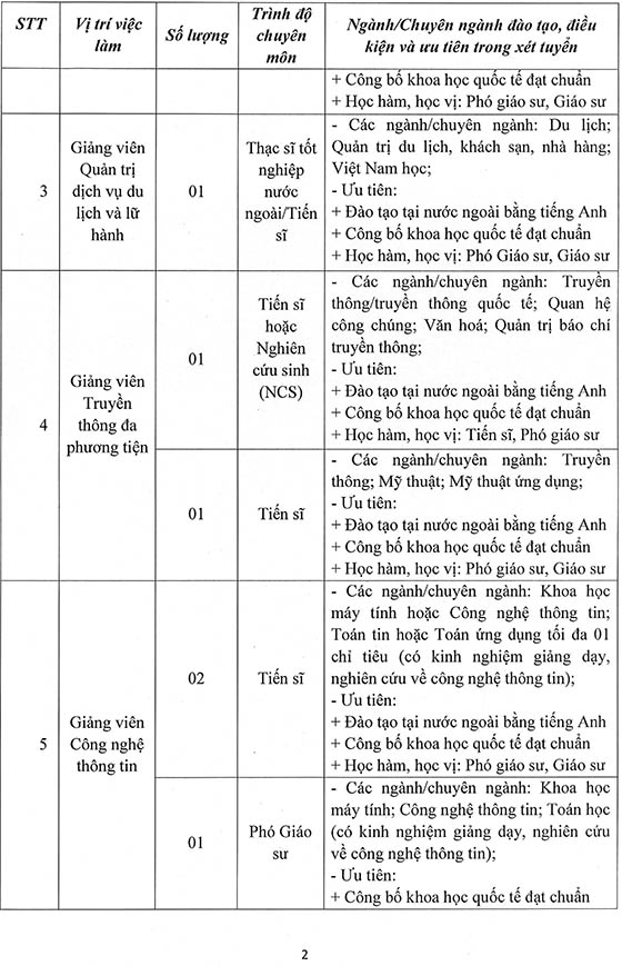 2. Hình thức tuyển dụng: Xét tuyển